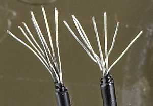 * Strip away half an inch of insulation from each strand of the WD-1 wire line.