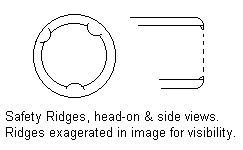 I picked four feet as a compromise length: short enough to handle, long enough to aim. And hopefully long enough to get the best advantage of air pressure without losing too much to friction in a long pipe. After you've cut your length, make sure you remove any burrs on the ends, both inside and outside of the pipe. You don't want your darts or lips to get snagged. For comfort, round off the outside edge of the mouthpiece end of your pipe. Don't round the muzzle end, though; you'll want to be able to distinguish the different ends by feel. This is for safety, believe it or not. Take a hot knife and press on the inside edge of the mouthpiece, melting a very small ridge into the edge. Do this at three points around the circle.