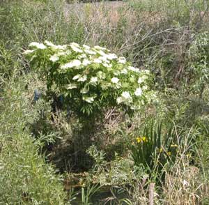 The fancy Black Elderberry tree below is bigger than it looks, about 8 feet tall. The berries are much appreciated by the birds. And it is heavily protected from the beaver.