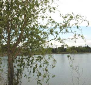 The little Golden Weeping Willow, in the center below, on one of the south end islands, will soon enough command the entire island, and shade-out the willow on the left and locust on the right.