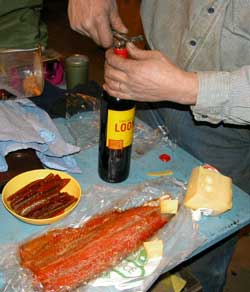 We looked out the door to determine that there were no mere riff-raff showing up, then broke out the good wine. Launched right into the stories of the projects we might bring into the shop, from vehicles, as the evening progressed. Well, even most that were brought in did not get out of the boxes and bags. But we got the grinder going, the belt sander, a couple cordless drills, a cork screw, and a pocket knife for the smoked salmon.