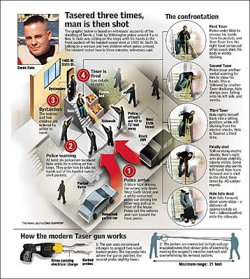 (It would have been interesting to learn about Kerik's ties to Taser International, the folks who manufacture the portable “Electric chair starter kit” devices now used so promiscuously by police; he joined TI's board in 2002, after leaving the Commissioner post, and made $6 million cashing in company stock options in November 2004, just before Amnesty International released a report documenting that scores in the US had been killed by use of the supposedly non-lethal Taser gun during the previous three years. NYPD invested heavily in Tasers, as did -- of course -- the Department of Homeland Security.)