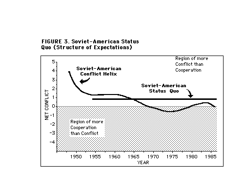In essence, and regardless of the stresses of the Sino-Vietnam War (1979) and the abrogation of the Sino-Soviet Friendship Treaty, Sino-Soviet conflict and cooperation has oscillated around the level established in 1969-1972. This can be seen in Figure 5, where their conflict helix is practically horizontal. In sum, then, the data suggest that about 1969-1970 a new structure of expectations and related status quo came into being that better reflected the reality of Sino-Soviet antagonism; and that this replaced the expectations of the 1950s that were based on Sino-Soviet amity.