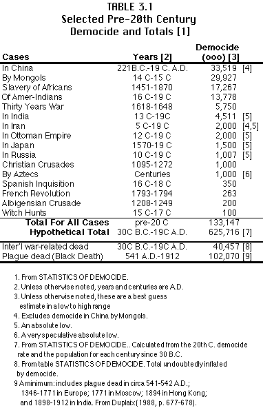 | The table in the upper right is from Table 3.1 of Death By Government. |