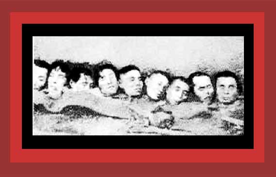 | During the Rape of Nanking decapitation was one of the favored murder techniques. Here are the resulting heads of some Chinese. For documentation, see China's Bloody Century, Death By Government and Statistics of Democide. Source: " Nanjing Massacre: 300,000 Chinese People Killed, 20,000 Women Raped ... " |