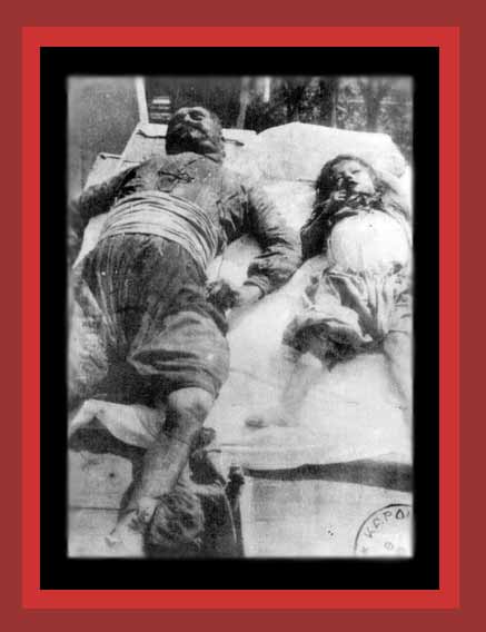| From 1900 to 1923, Turkish dictators not only murdered about 2,100,000 Armenians, but near 350,000 Greeks as well. They also murdered well over 100,000 other Christians, Lebanese, Syrians, Kurds, and Moslem Turks. Here are two the Turks murdered, a young boy and his uncle. For documentation, see Death By Government and Statistics of Democide. Source: "The Greek Holocaust Of Thrace, Asia Minor And Pontos". |