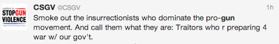 "Smoke out the insurrectionists who dominate the pro-gun movement. And call them what they are: Traitors who r preparing 4 war w/ our gov't."