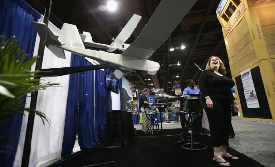Drones hang on display in the exposition hall of the Border Security Expo on March 12, 2013 in Phoenix, Arizona. Photo by John Moore/Getty Images