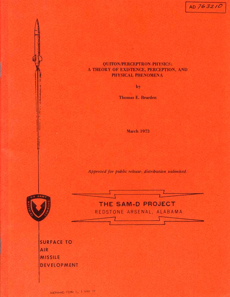 QUITON/PERCEPTRON PHYSICS, A THEORY OF EXISTENCE, PERCEPTION, AND PHYSICAL PHENOMENA by Thomas E. Bearden March 1973