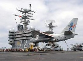 Bush on Deck, USS Abraham Lincoln, declares major combat over. On May 1st, 2003, President Bush took the co-pilot's seat in an S-3 patrol aircraft as a former Air National Guard Aviator, and flew out to the returning aircraft carrier, USS Abraham Lincoln. He was the first president in history to make the dangerous carrier-arrested landing on an aircraft carrier. While there, he gave a speech declaring that major combat operations in Iraq were over, that the Hussein, Ba'athist regime was destroyed and that the still dangerous task of rebuilding Iraq was in full gear. Read his full speech HERE.