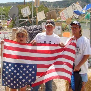 Report Number Six - Closed Gates and a New Bypass By: Jeff Head, August 24, 2001 [with many photos and narrative by Sean Finnegan] I was informed early on Thursday morning, August 23rd, that the Federal personnel had closed the headgates in Klamath around 6:30 my time. This was expected as they had announced that they would do this very thing sometime between Thursday and Friday. I had returned to Emmett, Idaho after the Freedom Day activities and had just arrived at my place of employment in Boise that morning. I immediately exited the building and began using my cell phone to contact people. I talked to several farmers and organizers regarding the situatioon. I talked to Sean Finnegan (aka "nunya bidness" on FreeRepublic). It was clear that the farmers in Klamath intended to have their rights and would not sit back and allow the water to be turned off without a response. Some were for "going in" and taking the headgates, others were for continuing a new petiton effort for the land owners with water rights to get the Sheriff to take more direct action against the Federal personnel at the headgates. This effort is a great effort, getting those landowners with water rights in Klamath County to sign a petition and later a complaint regarding the infringement of their rights. Apparently Sheriff Evinger had indicated he would take some action if 770 signatures could be gathered. They already had over 600 that morning (this number would grow to over 1300, virtually all of the citizens with water rights in the basin in Klamath county). Other farmers and organizers and supporters wanted to get a larger bypass going around the headgates, similar to what we had done five weeks earlier. I believed the petition idea was great, but also believed that some direct action was necessary. I advised them to see if they could get buy-in with the people that wanted to "go in" and then use their activities and "threats" to go in as a ruse, or diversion to hold the press in place while material was gathered for a bypass. We had used similar tactics to good effect five weeks earlier when we created the first bypass. I also advised them, from my perspective that the bypass put exactly the right kind of direct pressure on the government which was needed for ultimate success, and that they should get the material together and make that happen. My major point of contact was Sean Finnegan, who had driven out to Klamath from Maryland for the Freedom Day rally and who was stepping up to the plate to be a true friend of the farmers and a source of ongoing infrmation for folks tracking things on the web. Thank God he came there and that the Spirit moved him to stay and help. That every American could sense the urgency of this cause in the same way and respond accordingly. Information filtered in throughout the day, both by phone and by email. The gates were completely closed by 8 AM my time (7 AM in Klamath) and folks were gathering at the headgates ... the press contingent was very strong as they felt ... perhaps hoped? ... that a significant and direct confrontation would take place.
