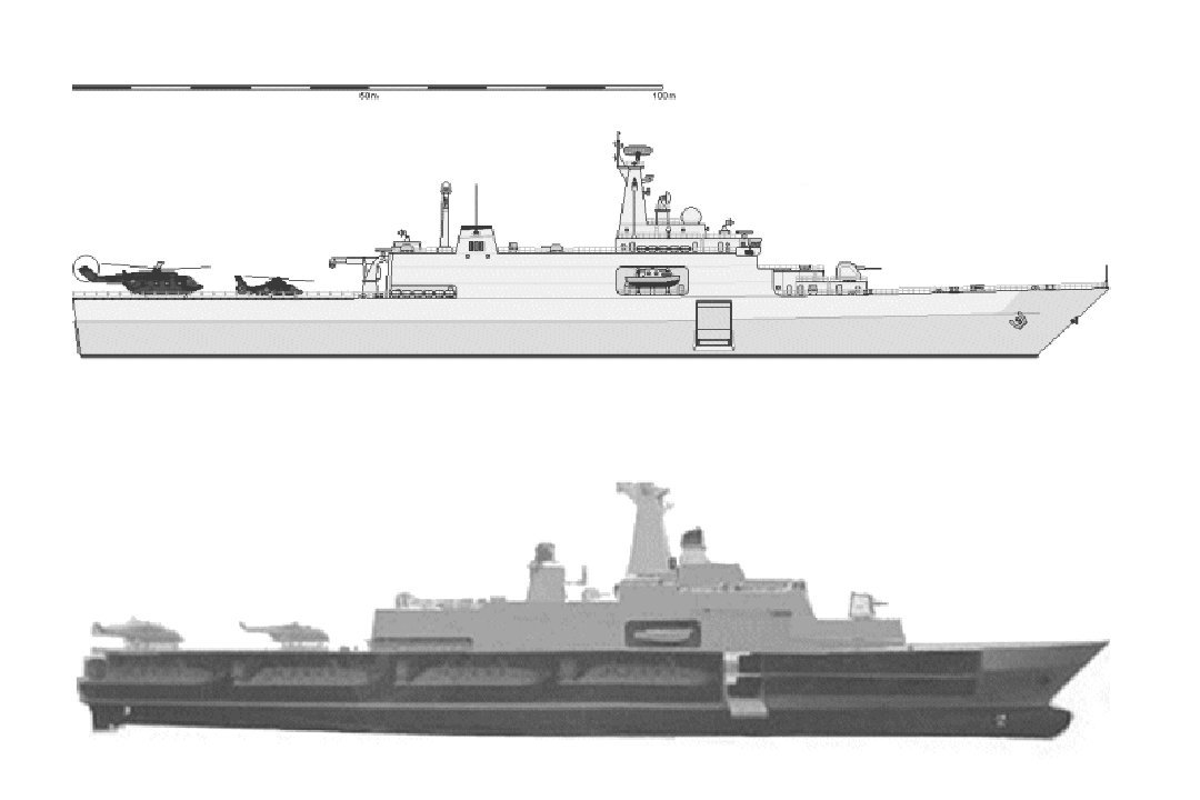 | TYPE 079 II (Yuhai) Qty: 20 (more building) Displacement: app. 1,000 t Crew: 56 Speed: 12 knots Aircraft: 0 Load: 250 - Troops 2 - MBT Armament: 2 - dual 25mm 1 - 40 tube MLRS |